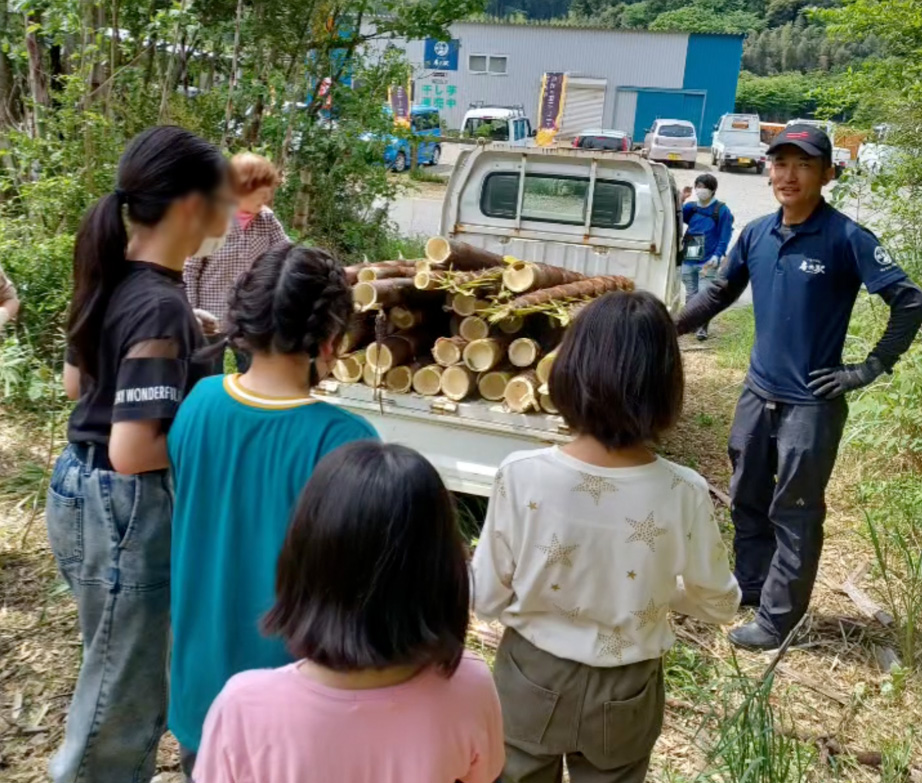 子どもたちを竹林整備体験とたけのこごはんランチに招待させていただきました。